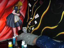 Hoy terminamos el segundo mural en Absam. Un Gooool, hecho por dos equipos a la vez, el Wacker de Innsbruck, y el Shaolin Team, el equipo donde juegan de los chicos. El gol festejado por todos, por una cabra loca, un surfeador de internet y un jinete sherif que juega a todo (Mahdi me dijo que se parece a Bin Laden entre risas), hasta por jinetes de Cricket y Buzkashi, típico juego Afgano... que curiosamente esta muy emparentado con el Pato Argentino...(para que descubramos hasta desde donde vienen nuestras raíces también!! Gracias por participar!